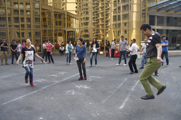 孔董事長是機關代表隊接力跳繩第一站位,正在等待指令首發(fā)