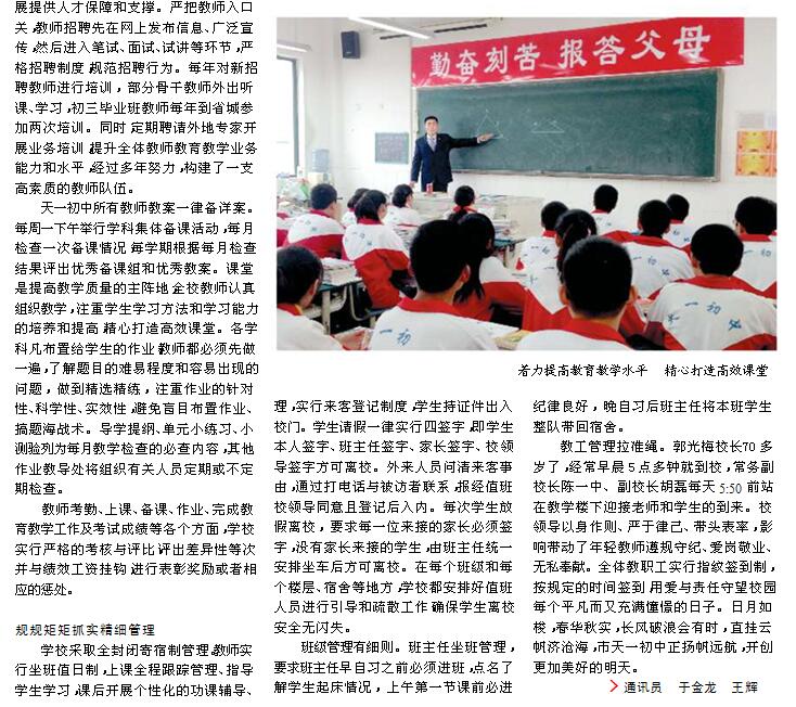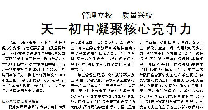 淮北晨刊連續(xù)報導(dǎo):天一初中凝聚核心競爭力