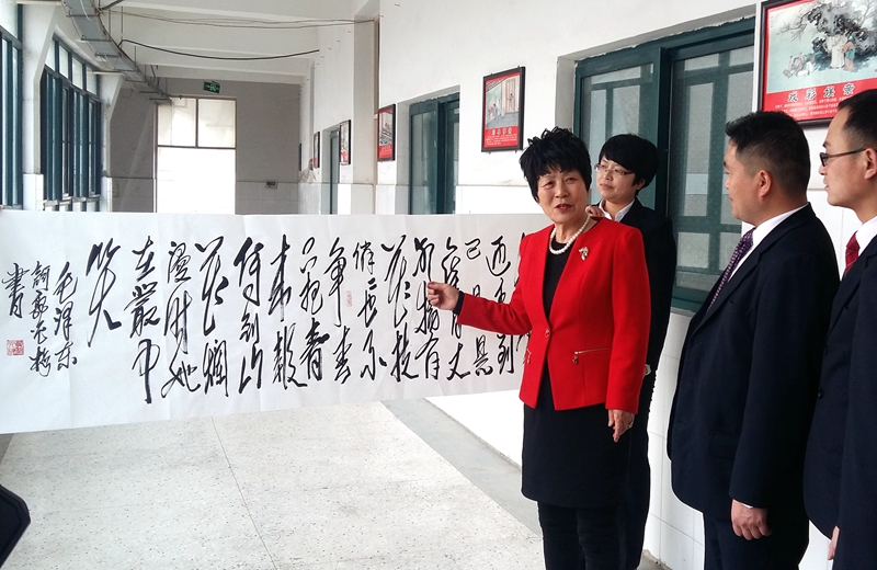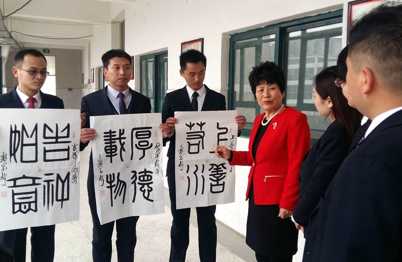 1月4日上午,淮北市天一初中集中開展了“書法進校園”活動。該校作為市孝文化基地一直重視傳統(tǒng)文化的教育,校長郭光梅是中國毛體書法家協(xié)會淮北分會主席,是一位有著40多年教育教學(xué)經(jīng)驗的資深書法家,特別注重對學(xué)生的傳統(tǒng)教育。