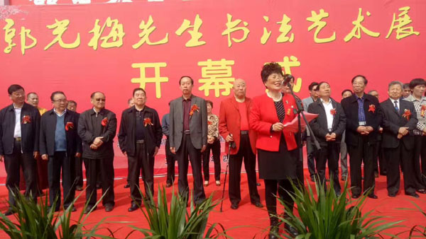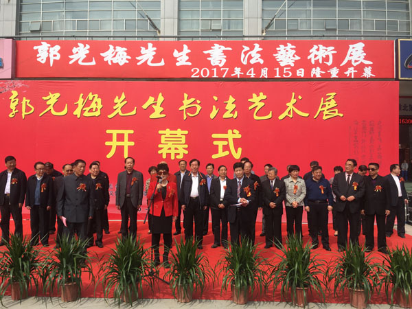 中國(guó)毛體書法家協(xié)會(huì)理事,中國(guó)毛體書法家協(xié)會(huì)安徽分會(huì)副主席、開(kāi)渠書畫院院長(zhǎng)、中國(guó)毛體書法家協(xié)會(huì)淮北分會(huì)主席郭光梅先生書法藝術(shù)展于2017年4月15日上午9點(diǎn)30分在淮北體育場(chǎng)東門淮北市體育中心展廳隆重舉行開(kāi)幕式。市人大常委會(huì)常務(wù)副主任方宗澤,市委常委、市委宣傳部部長(zhǎng)顧文,市人大常委會(huì)副主任楊彥穎、余敏輝,市政協(xié)副主席蔣守彬、李彥秋、錢丹嬰,市人大常委會(huì)秘書長(zhǎng)陳朝祥,市政府秘書長(zhǎng)宋偉出席開(kāi)幕式。