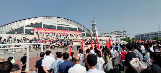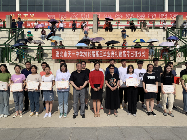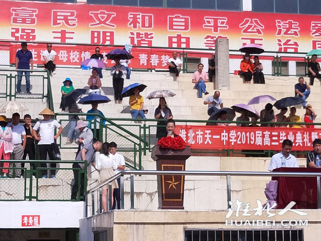 6月4日,淮北市天一中學(xué)2019屆高三畢業(yè)典禮暨高考出征儀式在天一中學(xué)體育場舉行?;幢币恢行iL、天一中學(xué)董事長馬穎女士、天象集團(tuán)董事長、天一中學(xué)副董事長孔令發(fā)先生、天一中學(xué)董事、天一初中校長郭光梅女士,以及天一中學(xué)校長林祥華先生、黨支部書記杜宏偉先生、常務(wù)副校長李平先生、副校長王小虎先生、天一初中常務(wù)副校長陳一中先生、副校長胡磊先生等出席了這次典禮。全體畢業(yè)生在國旗和驕陽下喊出青春的誓言,校領(lǐng)導(dǎo)、教師還有家長匯集于此,共同見證孩子們激昂又榮耀的一刻。