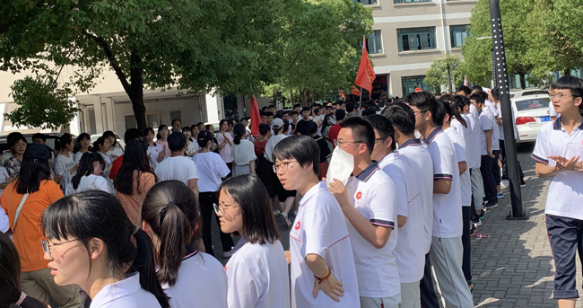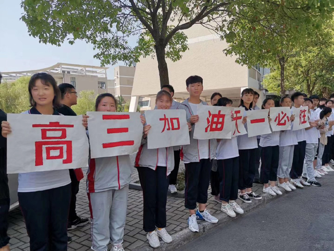 最后在慷慨激昂的出征曲中,畢業(yè)生們搖旗出發(fā),高一學(xué)生以及家長、老師為同學(xué)們夾道送上祝福。