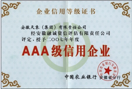 2007年農(nóng)業(yè)銀行AAA信用企業(yè)