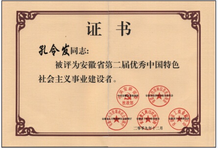 2009年孔令發(fā)董事長獲評優(yōu)秀社會主義事業(yè)建設(shè)者